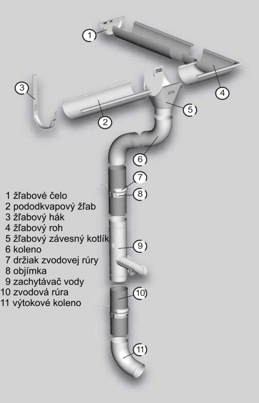 Klampiarske odkvapové výrobky ponúkame z pozinkovaného, medeného, hliníkového a lakoplastovaného plechu zo širokej škály farebných odtieňov. Sortiment odkvapových klampiarskych výrobkov:
